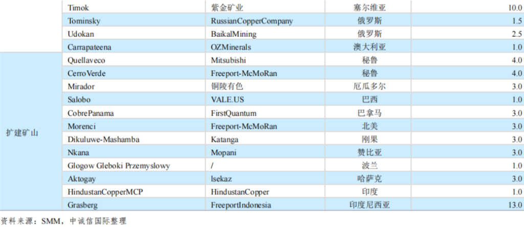 从全球矿业公司的情形来看,,, ,2022年全球铜精矿供应量有望实现恢复性增添,,, ,动力主要泉源如下:一是由于疫情影响而被迫减产或停产的铜矿项目自2021年最先陆续复产;;;二是原妄想2020年投产或扩产的铜矿项目由于疫情推迟到2021和2022年及以后投产;;;三是高铜价刺激的新投产项目或扩张项目加速进度。。